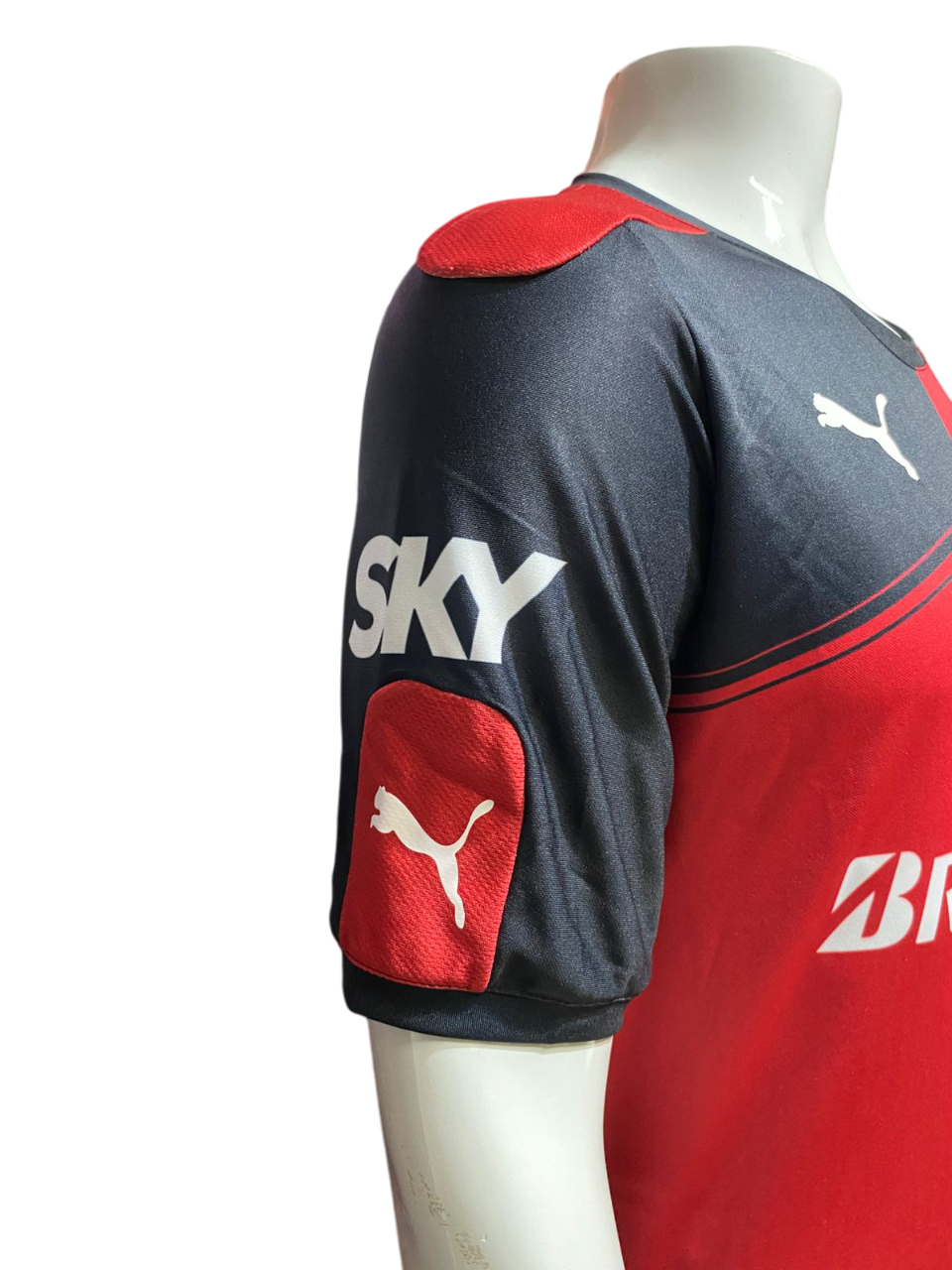 Manga corta, escudo del equipo y patrocinios, material poliéster.