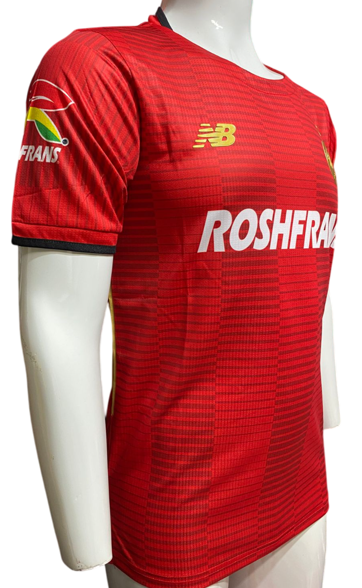 Manga corta, corte slim fit, escudo del equipo y patrocinios y material poliéster